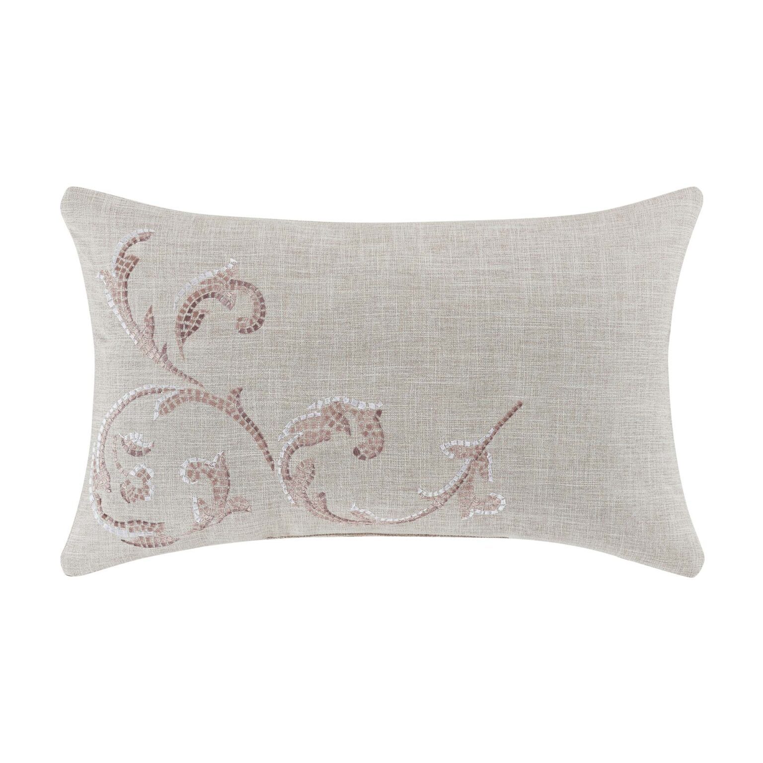 The Angeline Boudoir Throw Pillow Is Beautifully Embroidered With A Detailed Mosaic Technique. This Blush Embroidery Traces A Lovely Scroll Design That Complements The Traditional Damask Pattern Found On The Top Of Bed Of The Angeline Bedding Set By JQueen NY. Pair This 13 X 21 Inch Pillow With The Angeline Bedding Set For A Complete Elegant Look.