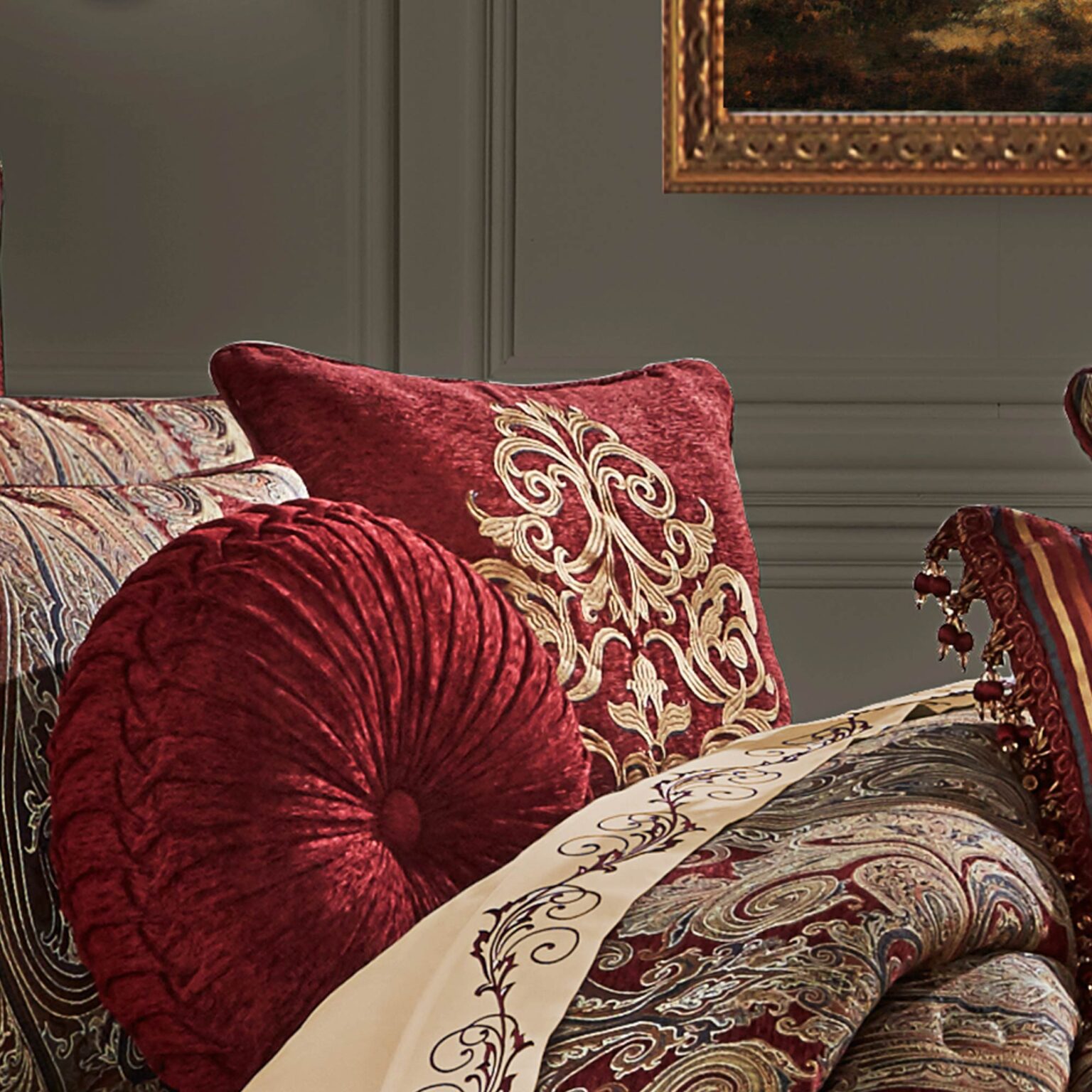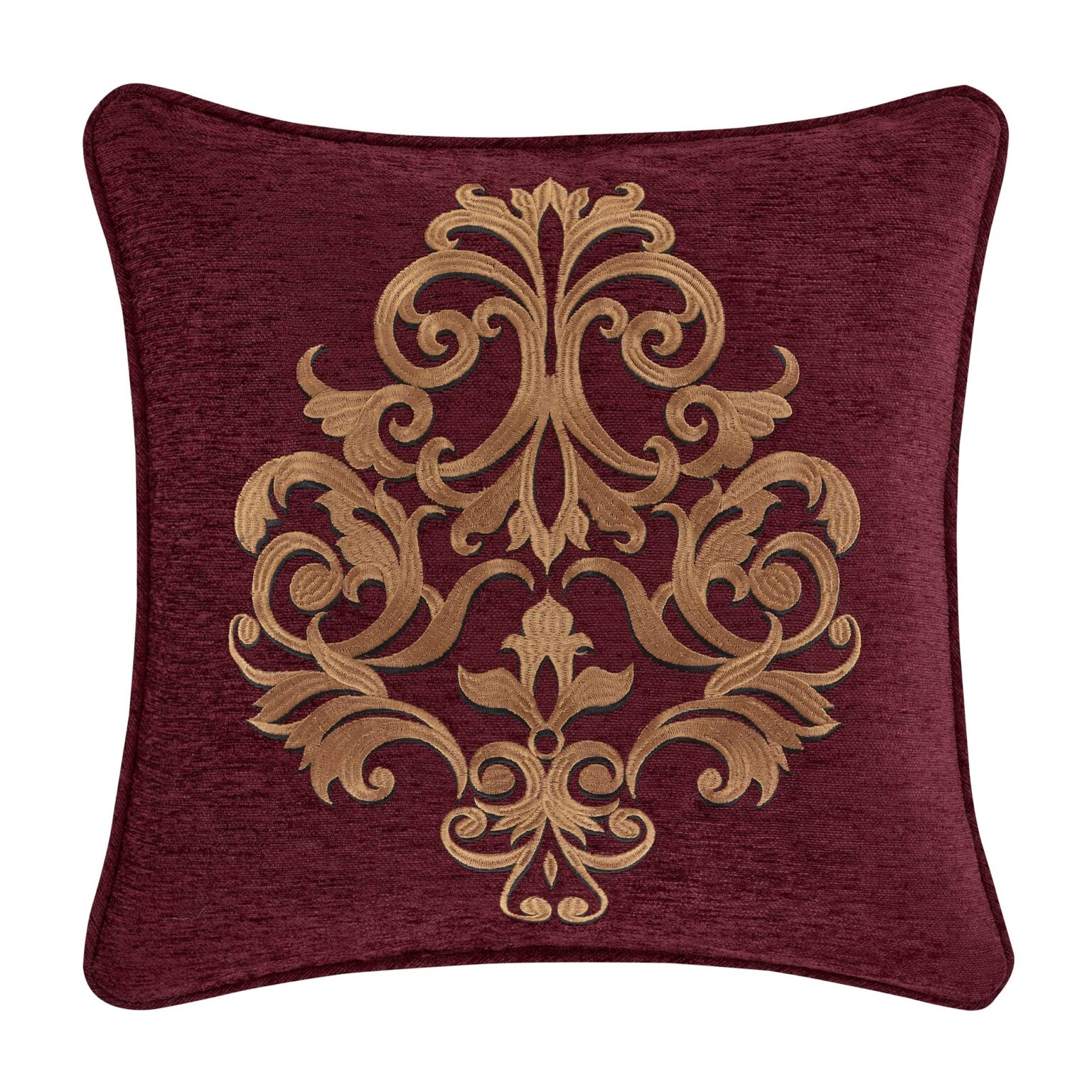 The Garnet 18 Inch Decorative Throw Pillow Is Beautifully Embroidered With A Luxurious Gold Colored Damask On A Red Design House Quality Base Fabric. This Square Accent Pillow Brings Richness To Your Bedding Decor By Adding Elegant Dimension And Traditional Eye-Catching Colors. Pair This Luxe Statement Pillow With The Garnet Bedding Set By JQueen NY For A Complete Look.