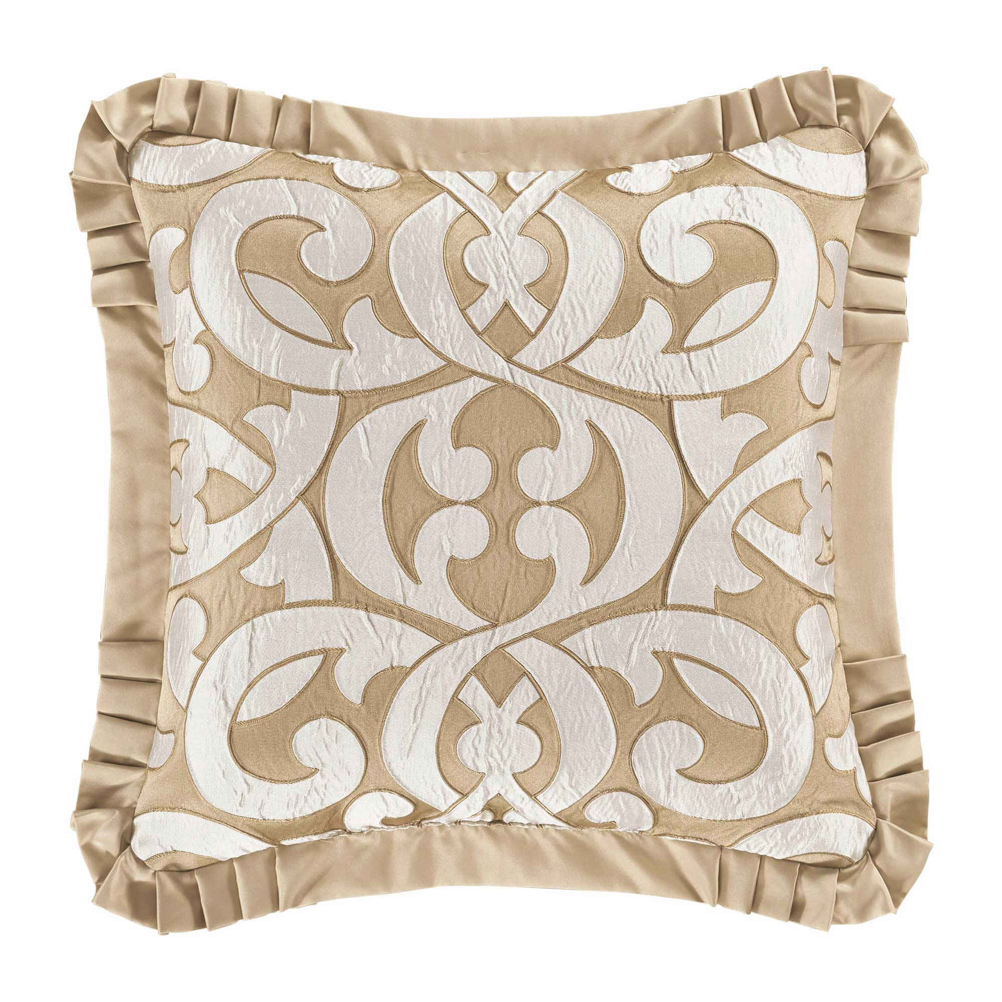 A Generous 20” Embellished Square Throw Pillow Is A Perfect Decorating Accessory Not Only To Complete The Bedding Ensemble But As An Elegant Accent In Other Areas Of The Home. Each Pillow Is Cut And Sewn Exactly The Same. Showcasing The Large Golden Damask On One Side And A Stunning Geometric Pattern On The Other For Added Versatility. A Lovely Pleated Flange Finishes The Pillow For A Tasteful Decorator’S Touch. Pair This Pillow With The La Boheme Bedding Set By JQueen NY For An Updated Luxe Look.