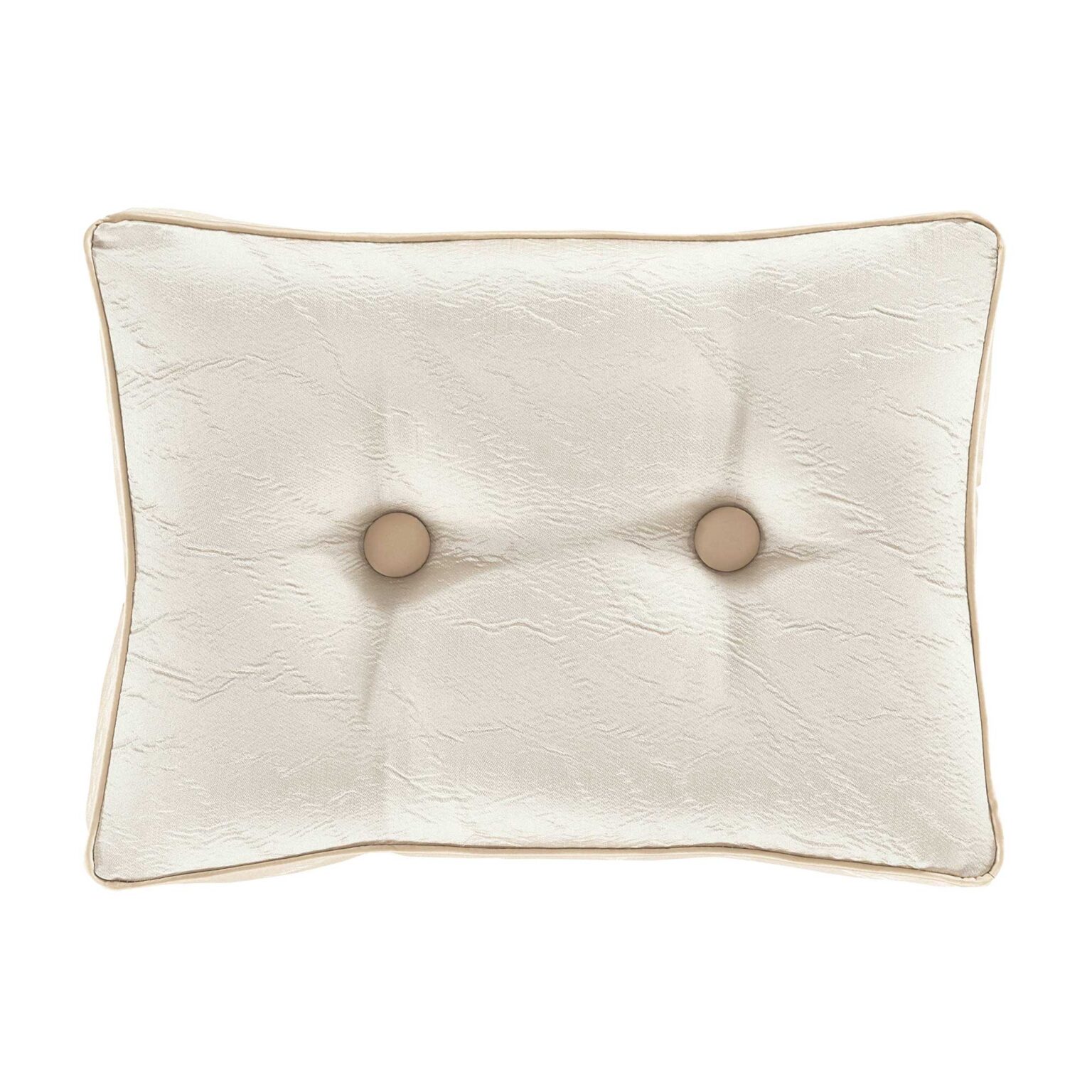 The La Boheme Two-Button Gusseted Boudoir Pillow Adds A Simple Yet Sophisticated Solid Contrast To The Elegant Patterns. The Crushed Ivory Satin Is Tufted On Both Sides With Large Pale Gold Satin Covered Buttons. The Gusseted Pillow Is Framed All Around With An Elegant Pale Gold Satin Trim. Pair This Pillow With The La Boheme Bedding Set By JQueen NY For An Updated Luxe Look.