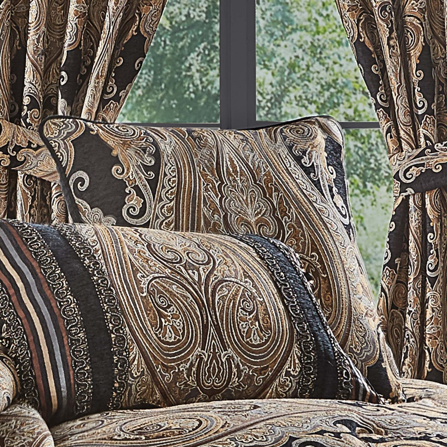 The 20 Inch Decorative Throw Pillow Features A Woven Black Chenille Damask With Tones Of Gold, Chocolate And Graphite. Finished With Black Chenille Piping And Reverses To Solid Black Chenille For Added Versatility To Your Décor.
