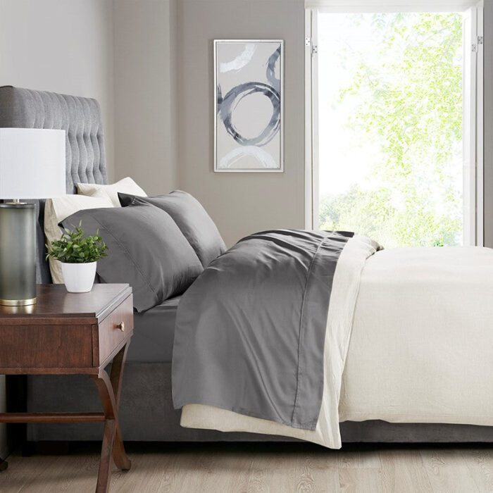 1500 Thread Count Cotton Blend 4 PC Sheet Set in Charcoal, King Madison Park20-6405