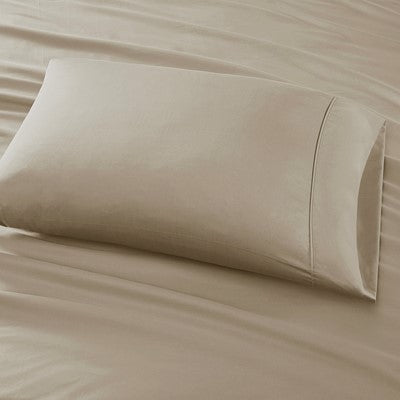 Sleep in the lush comfort of the Madison Park 525 Thread Count Cotton Blend Sheet Set. This solid sheet set is made from cotton blend sateen weave fabric with a 525 thread count. Our sheets go through a very light brushing process that gives them an incredible peach-like feel against your skin. If you’ve wanted to try cotton sateen sheets in the past, but have been put off by their crisp hand then these sheets are definitely for you. An included fitted sheet features a 1-inch snug grip elastic around the edge to securely stay on your mattress. These sheets are also OEKO-TEX certified, meaning they do not contain any harmful substances or chemicals, ensuring quality comfort and wellness. Super easy to wash. Ages well and becomes rumpled and relaxed after every wash, while ensuring a deep sleep each night. Set includes: 1 Fitted Sheet, 1 Flat Sheet, and 2 Pillowcases.