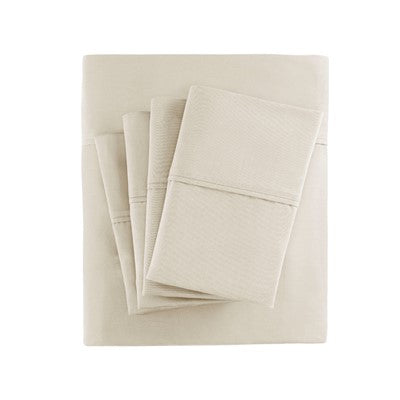 Set includes flat sheet, all over elastic fitted sheet (2 fitted sheets for Split King sizes), and 4 pillowcases