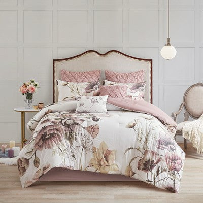 Cassandra 8 Piece Cotton Printed Comforter Set in Blush, King Madison Park10-6165