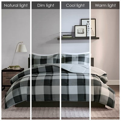 Essentials Barrett 3M Scotchgard Down Alt Comforter Mini Set in Grey / Black, Twin / Twin XL Madison ParkE10-558