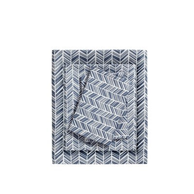 Essentials Chevron Printed Microfiber Sheet Set in Navy, Cal King Madison ParkE20-472