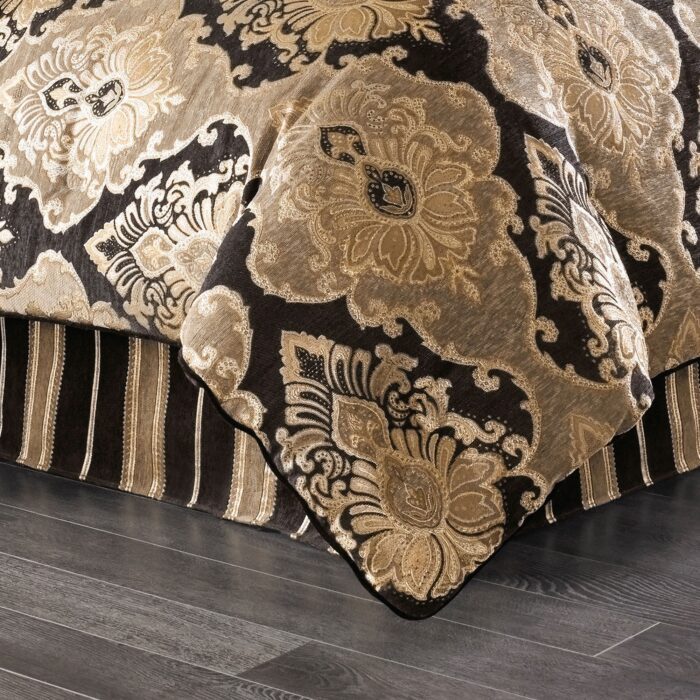 Set includes comforter, 2 euro shams, 2 matching shams, 2 decorative pillows and 1 bed skirt