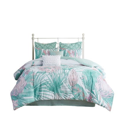 Keilani 8 Piece Cotton Printed Comforter Set in Aqua, King Madison Park10-7535