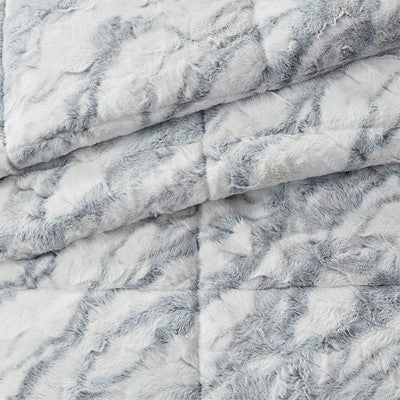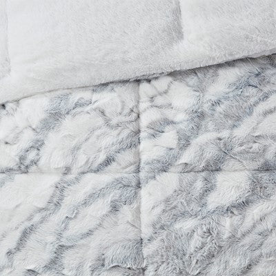Lana Marble Faux Fur Comforter Set in Grey / Blue, King Madison Park10-6571