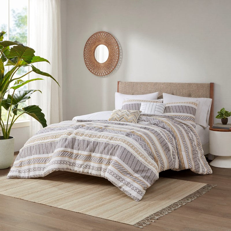 Newton 5 Piece Cotton Printed Comforter Set in Yellow / Charcoal, Full / Queen Madison Park10-7365