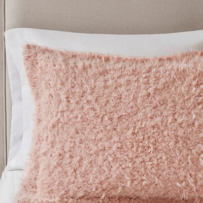 Nova Faux Mohair Reverse Faux Mink Comforter Set in Blush, King Madison Park10-6005