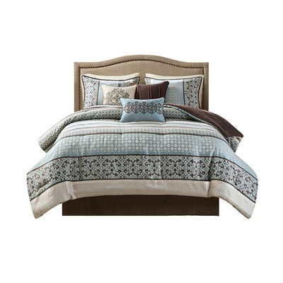 Princeton 7 Piece Jacquard Comforter Set in Blue, Queen Madison Park10-694