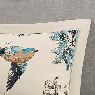 The Madison Park Quincy 7 Piece Comforter Set brings a warm country update to your bedroom. This cotton twill comforter features a classic leaf and bird print on the face with a solid reverse that adds a splash of color to the cottage look. Two matching shams pair perfectly with the comforter and three decorative pillows add dimension. A solid bed skirt provides the finishing touch, completing the comforter set. This bedding set is also OEKO-TEX certified, meaning it does not contain any harmful substances or chemicals to ensure quality comfort and wellness.