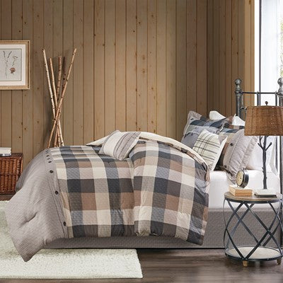 Cabin farmhouse style 7 piece comforter set in buffalo plaid pattern