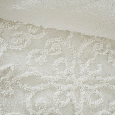 Sabrina 3 Piece Tufted Cotton Chenille Duvet Cover Set in Off White, King / Cal King Madison Park12-6104