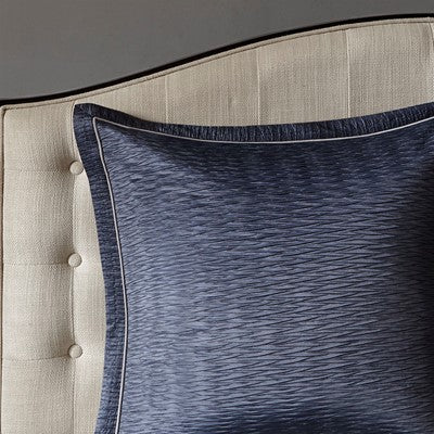 Introduce true luxury to your bedroom decor with the Madison Park Signature Sophisticate 9 Piece Velvet Comforter Set. The grey velvet comforter flaunts silver embroidery and quilting details that create a luxurious textural allure. Coordinating shams mirror the design of the comforter, while the Euro shams feature pleats and embroidery on the face to complement the ensemble. Also included are three decorative pillows with elegant embroidered detailing to provide the finishing touches to the bedding set. With its silky look, this oversized and overfilled comforter set provides incredible comfort and brings a stunning and lavish update to your bedroom. This comforter uses a removable duvet-style insert that is secured by inner ties and a hidden button closure. This provides no visible bartacking lines on top of the bed to create a smooth, clean face. Dry clean comforter cover only and machine wash comforter filler.
