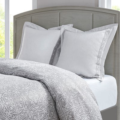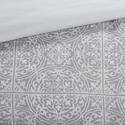 Transform your bedroom with the elegance of the Madison Park Signature Windham 8 Piece Jacquard Comforter Set. This grey and white oversized comforter and 2 matching shams feature a tile jacquard pattern to create a luxurious transitional look. An overfilled removable comforter insert (included) is secured by 4 inner ties and a button closure, while also eliminating visible bartacking lines from the top of the bed, for a clean duvet-style allure. Also included are 2 Euro shams (3 in King) that gorgeously pair with the comforter, while 2 square decorative pillows and 1 oblong decorative pillow provide the finishing touches to complete this luxury bedding set. Each decorative pillow features a removable cover with a zipper closure and fabric manipulation that adds texture to this elegant comforter set. Comforter Cover: dry clean only. Comforter Insert: machine washable.
