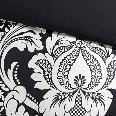 Features Intricate damask design in black and white contrasted colors and solid black color on the reverse