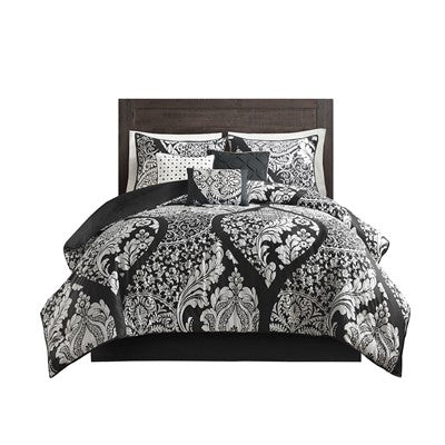 Vienna 7 Piece Cotton Printed Comforter Set in Black, King Madison Park10-7954