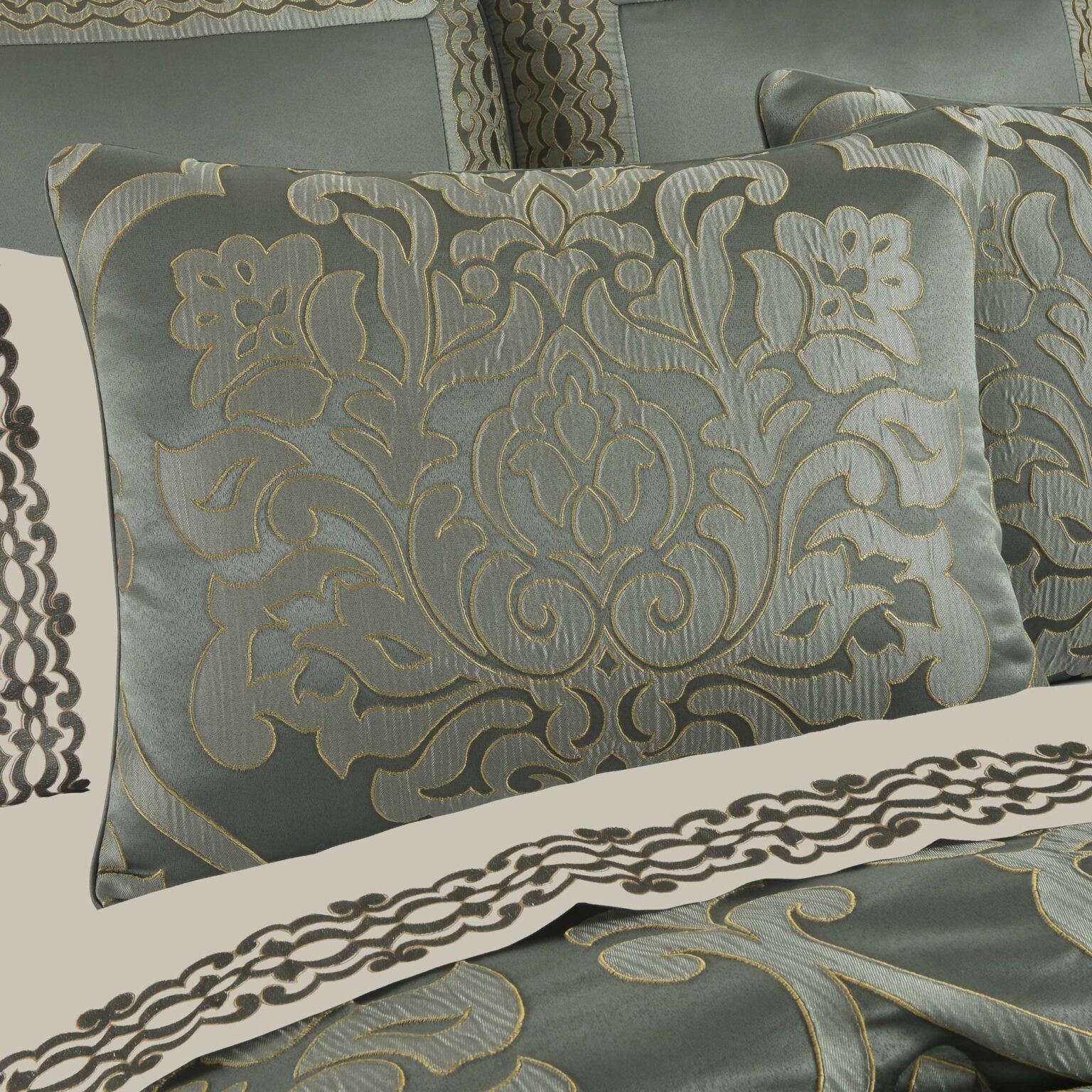 The Santino 4 Piece Comforter Set Is Exquisite With Its Attention To Details And Design House Luxurious Quality. Subtle Tones Of Jade And Silver Sage Are Combined With A Large-Scale Ornate Framed ‘Surano’ Damask Pattern And Finished With An Elegant Border. This Oversized Set Is Truly Stunning And Will Give Lasting Comfort And Opulence To Your Decor. Santino Throw Pillows, Euros, And Window Treatments Are Available Separately.