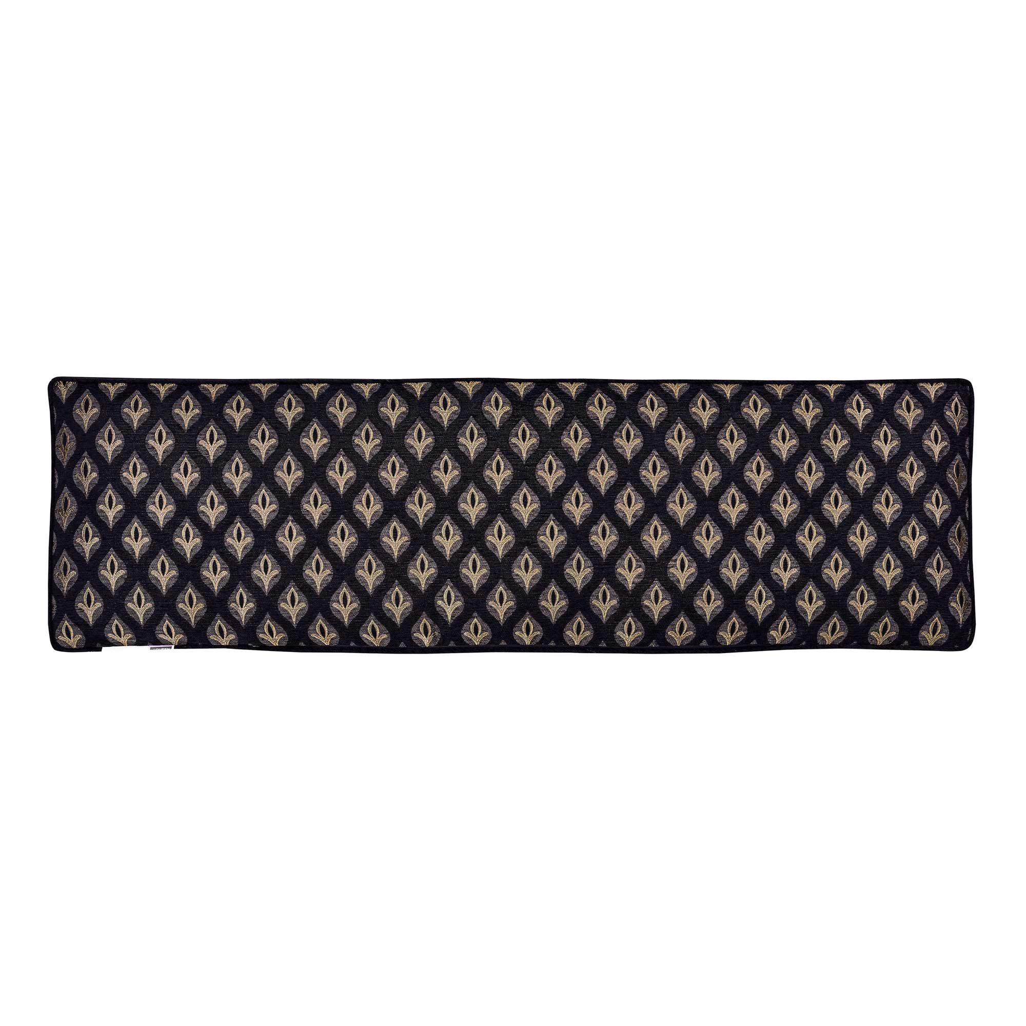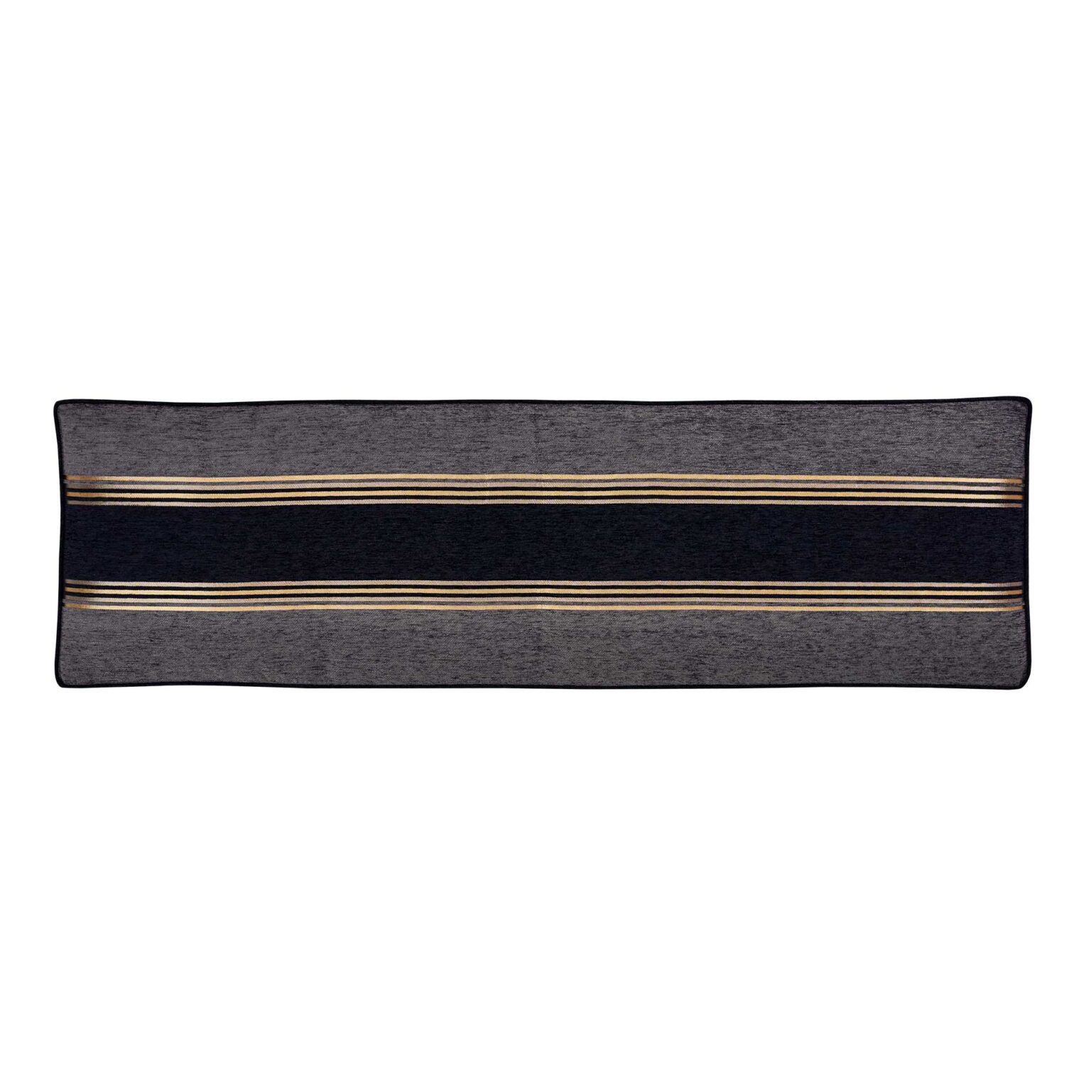 The Savoy Reading Bolster Adds A “Luxury Hotel” Dimension To The Collection. The Oversized Accent Pillow Spans The Width Of The Bed And Is Perfect For Propping Up When Reading. It Is A Reversible Pillow Featuring A Wide Gold Band Framing The Black Chenille And Pewter Stripes. The Reverse Side Is Constructed With A Stunning Chenille Foulard With A Gusset For Added Loft And Support.