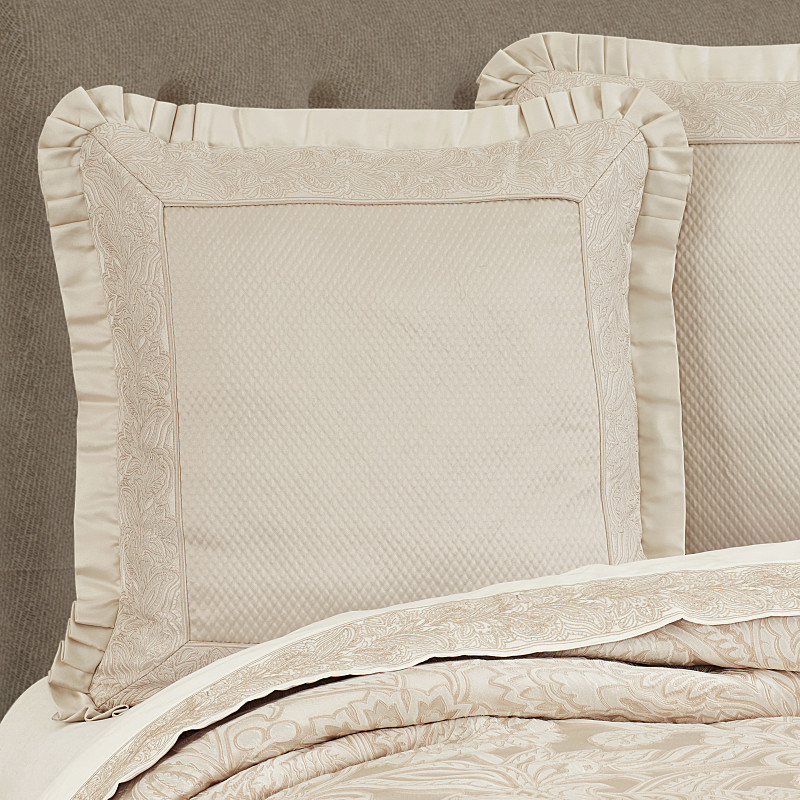 The Villanova Euro Pillow Sham adds elegance and dimension to your bedding ensemble. Crafted from plush tonal satin and framed with a jacobean border on all four sides in soft champagne pink tones, it combines luxury and sophistication.