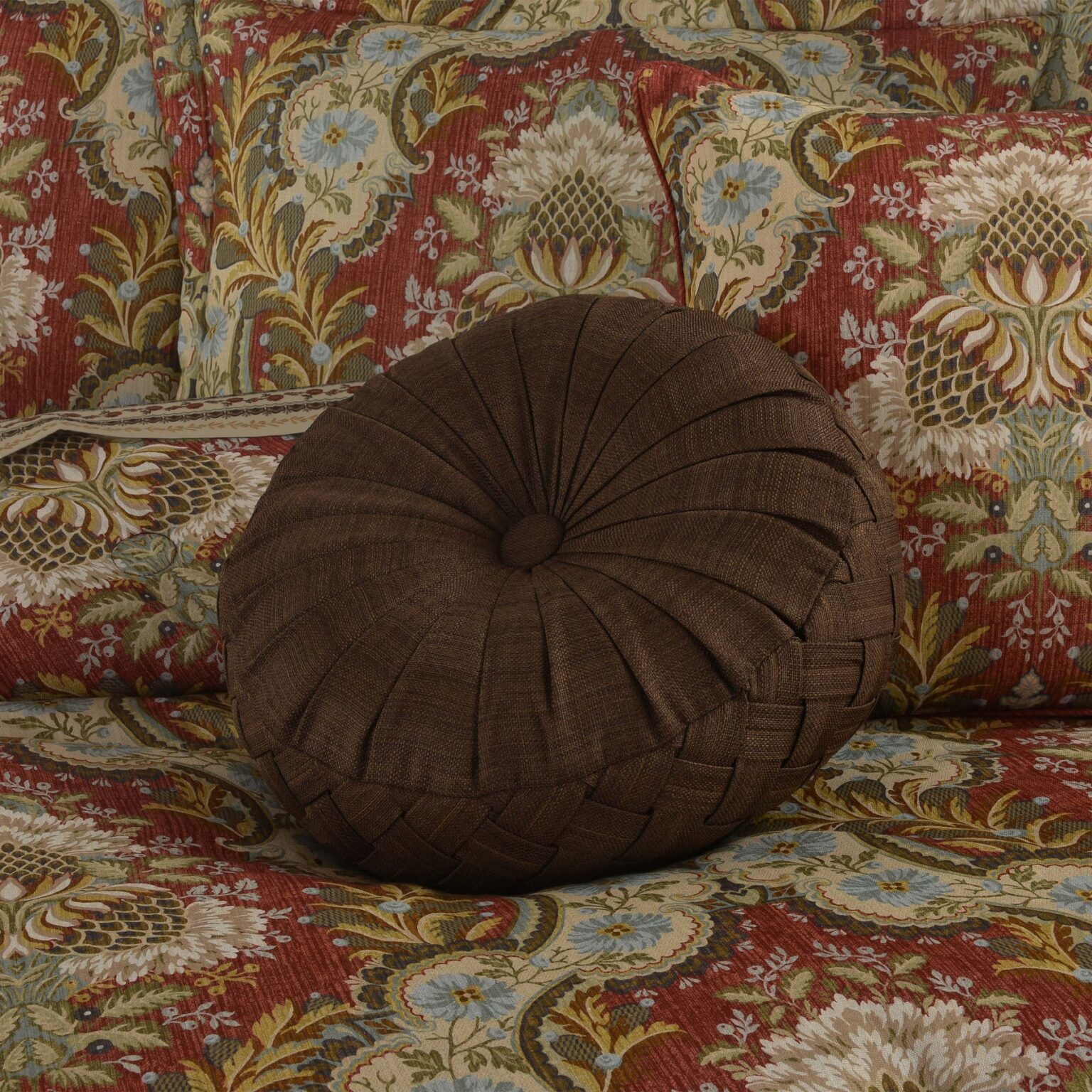 The Sayre Tufted Round Pillow is a sophisticated accent for your bedding ensemble. Crafted from solid chocolate woven textured cotton, this hand-sewn pillow features a fabric-covered button on both sides and a braided gusset detail that adds depth and refinement.