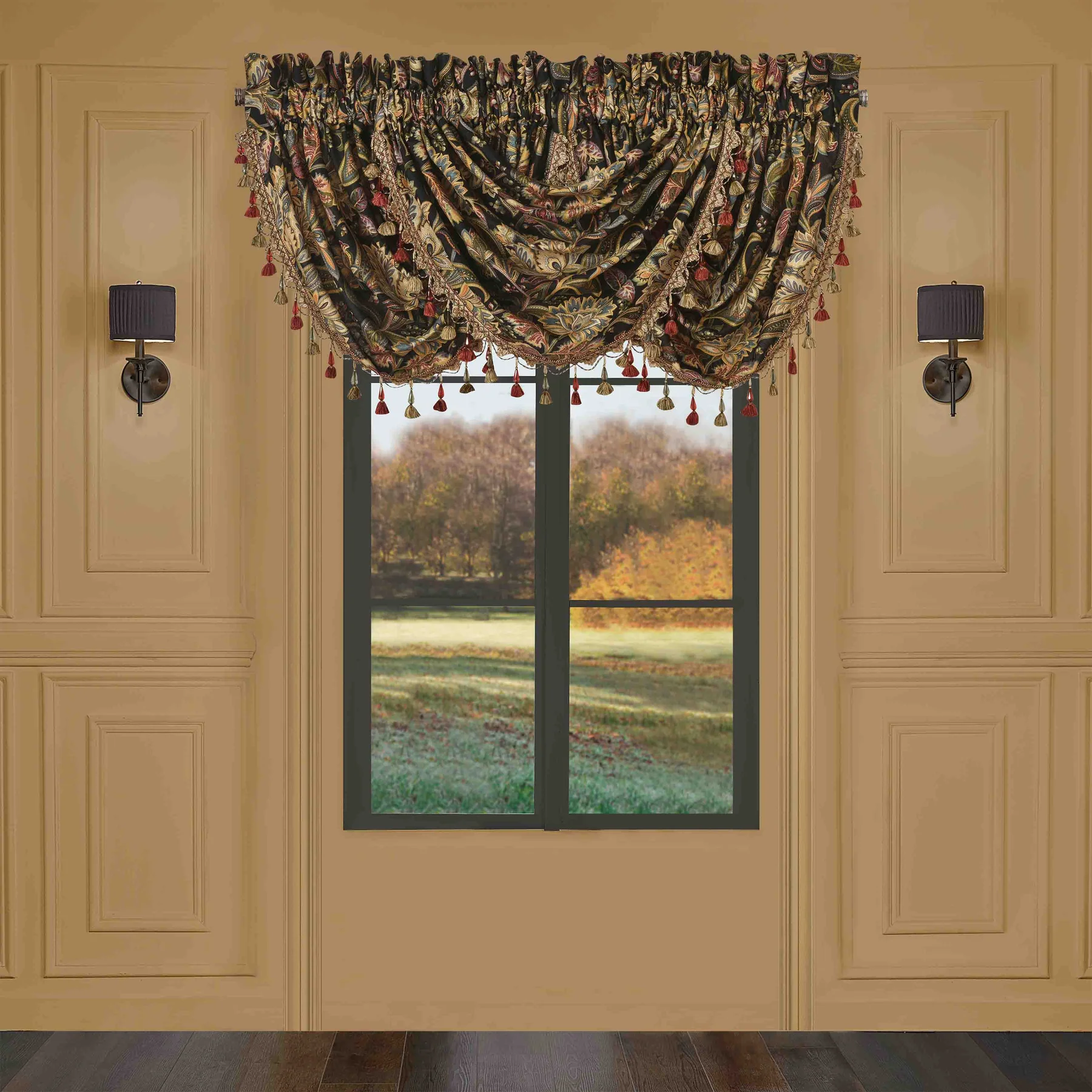 Create a custom, designer look for your windows with the Luxurious Waterfall Valance, featuring the same printed Jacobean floral pattern that coordinates perfectly with the matching window panels and bedding. This exquisite valance is finished with a crystal tassel fringe, adding a touch of sparkle and sophistication. For the full, elegant effect shown in the photo, we recommend using three valances.